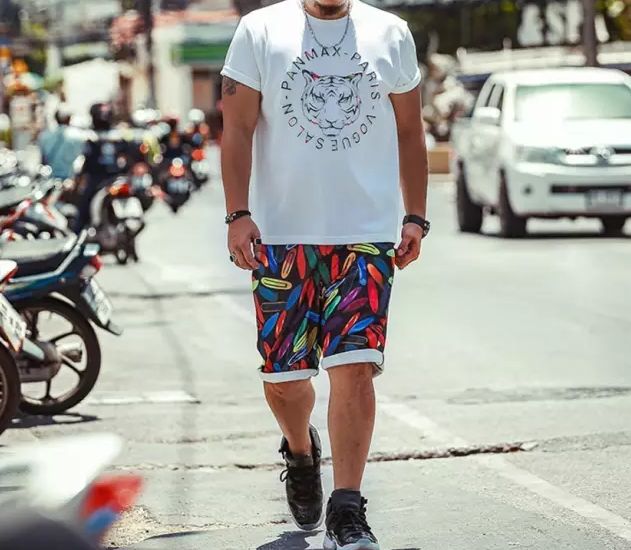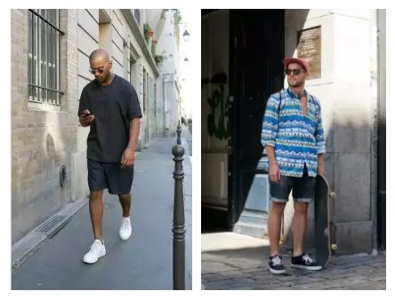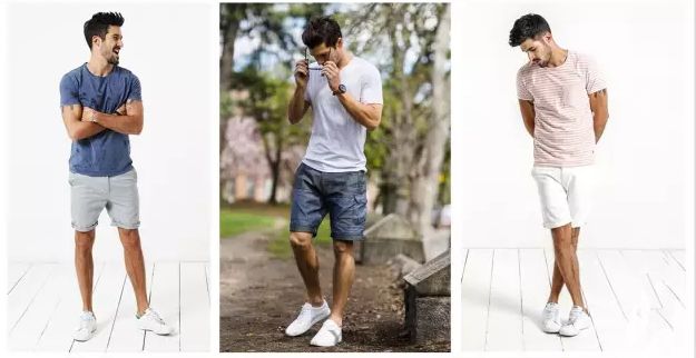 没有大长腿,那就选择不过膝盖的短裤来调节视觉差异,同时尽量选择纯色短裤。鞋子不要高过脚踝,让腿看起来更长。