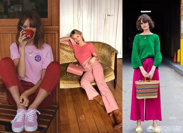 其实,如此华丽的颜色并不难穿。如果您不知道要匹配什么颜色,请考虑图1所示的类似颜色的搭配,或图2所示的同一颜色系统中不同颜色的搭配。这种搭配方法可以让你的搭配看起来更完整和和谐。当然,如果你有很好的色彩搭配技巧,可以选择如图3.1所示的对比色搭配,这是非常丰富多彩和个性化的有态度的。