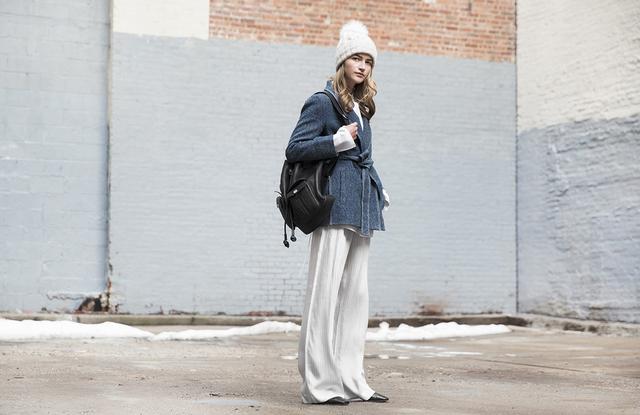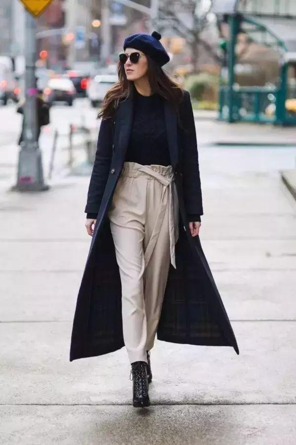 相比冬天清一色的黑灰色,白色更能给人眼前一亮的感觉,一扫冬天的沉闷,使得整体造型更加时尚鲜丽。初秋时用白色阔腿裤搭配衬衫,干净利落,选择一些荷叶边、木耳边的设计会更显优雅。小个子女生一定要选择高腰的阔腿裤,将裤脚微微卷起,搭配短款上衣,俏皮又可爱。微胖的妹妹可以选择富有垂感的白色阔腿裤,扎一条皮带轻松显出腰线,外加一件牛仔外套会使整体搭配更丰富。