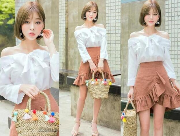 又到一年一度的春季了,换季的时候是最烦恼的,之前我们都是穿厚实的羽绒服啊,棉衣啊,现在回暖的春天,我们都要把那些外套脱掉,换上舒适又时尚的春季穿搭了哦,那么换季衣服别乱穿,试试这款荷叶边半身裙和露肩白色衬衫的搭配吧,好看又时尚,而衬衫露肩的设计,性感又迷人,满满的诱惑力,白色更是百搭了,下身搭配的荷叶边半身裙,不规则元素的设计,满满的时髦感,高腰的裙身,轻松穿出高挑身材,显瘦更美。