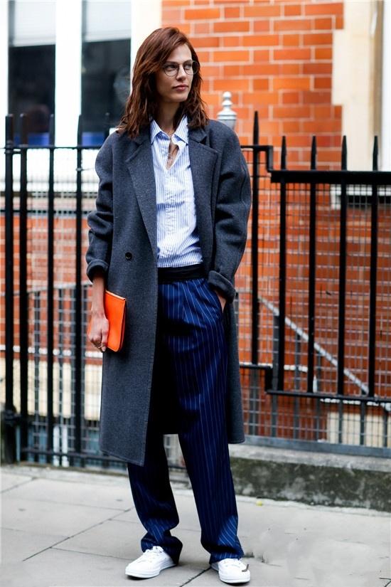 但衬衣较薄,最常见的是春夏秋季,冬季穿搭的人却非常的少。事实上,衬衣的厚薄并不影响穿搭,冬季的厚款衬衣也逐渐普及开来了。另外,在初冬时节,单件厚衬衣搭配大衣完全可以御寒,并且也方便室内增减衣服。畏寒的小姐姐们可以在衬衣里加高领针织打底衫,即保暖又不失时尚之感。此外,衬衣搭配大衣时还可以选择佩戴一副金属边复古圆框眼镜,为自己增加一丝文质彬彬的气质。