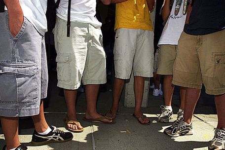 对于短裤长度的讨论,已经有很多了。对于一个直男来说,穿超短裤,是让人极其尴尬的一件事情。像这样露出白花花的大腿,是要跟妹子比身材么?穿这么短的超短裤,别说妹子受不了,大老爷们更受不了。