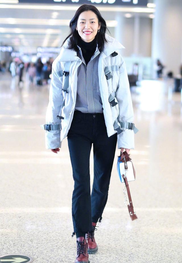 十分畏寒的小姐姐还可以在宽松的羽绒服内大下功夫,增加抵御寒冬的能力。气质女神刘雯短款银白色的羽绒服自带环扣,加上黑色直筒裤,男装搭配。个性十足又简约大气。此外,大表姐又在针织的打底衫外加上竖条纹的衬衫,让整个人的气质瞬间变得高级又知性,并且蓝色条纹的衬衫还给了人清爽之感,让人保暖的同时又不躁热,不愧是走在时尚巅峰的大表姐。各位小姐姐也可以这样学起来,灵活的利用衬衣等单品,让自己更加保暖的同时还巧妙的多了一丝时髦之感,真是一箭双雕。