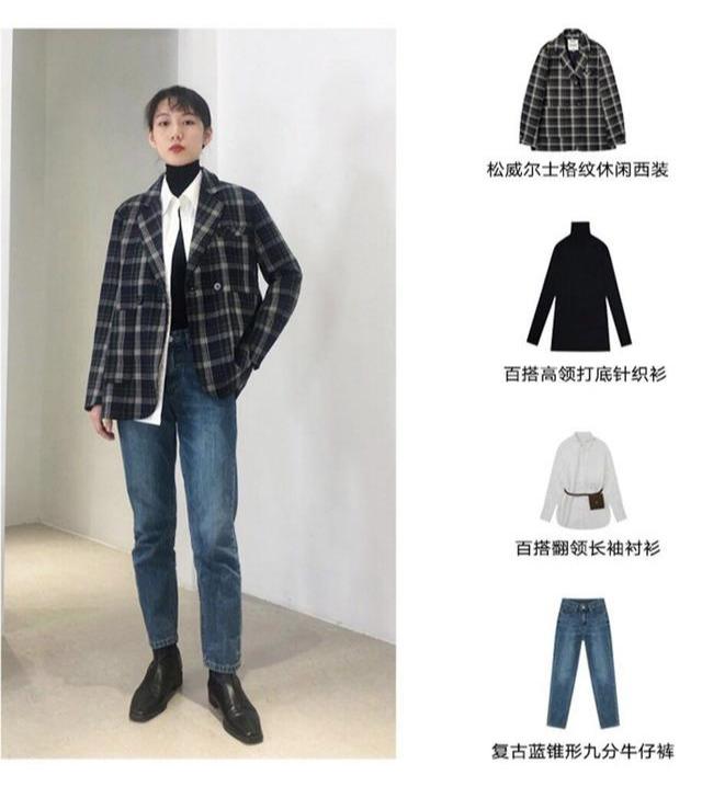 这样搭配虽然看起来比较繁琐,但是风格却非常的鲜明独到。格子西装外套潇洒帅气,里面搭配黑色打底针织衫,在套一件白色的长袖衬衫,色彩分明的穿搭都容易给人视觉上和直觉上的冲击,整体的风格也比较休闲。