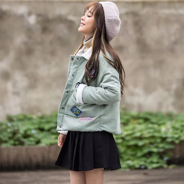 很是小清新风格的一款棉服,内里是羊羔绒的材质,舒适保暖,冬季内搭厚一点的毛衣,依旧可以暖暖的过冬哦。在色系上,都是属于比较偏向甜美风的哦,很是适合这个年纪的你哦。