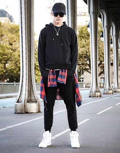 连帽卫衣+运动裤这套搭配是比较运动街头风的,很休闲随性。就像一个没有烦恼的少年,无忧无虑。这样的穿搭不仅显的青春减龄,充满年轻活力气息。套上一双休闲鞋,一身造型潮帅有型,回头率瞬间飙升。