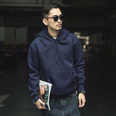 连帽卫衣+棉服是一个很好选择,第一,棉服比较厚实但是却缺少一点点的街潮感。第二,加入连帽卫衣可以突显出其潮流感,丰富整体的层次感,低调又不失奢华。下搭一条牛仔裤,彰显男人率性不羁的个性感。