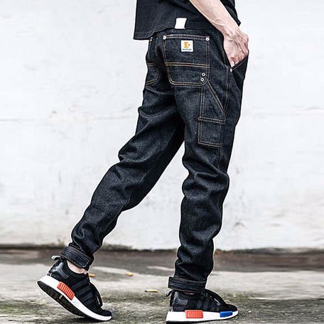 ▲上半身那么帅气,又怎么能少了牛仔裤这个角色呢。它具有狂野硬朗的说法,能够将男人的身材展现的淋漓尽致,同时又可以营造出桀骜不驯潇洒感。就比如这款,裤身有点类似于工装裤的设计,十分的别致吸睛。