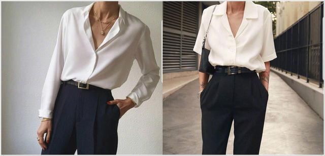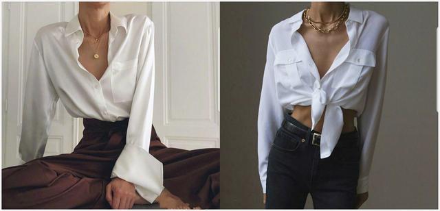 说到衬衫,自然不能忘了经典白衬衫,无论哪个年龄段的女生都适合的衣服类型,建议在面料上选择真丝桑蚕丝,会更高级,款式上,不管是长袖还是短袖,都尽量选宽松袖,别选服帖型,对微胖型的女生来说会显胖,至于领口,无论是有扣还是无扣,都尽量敞开至胸上面2-3厘米处,会显得性感而不低俗。