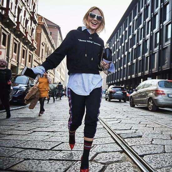 卫衣叠加衬衣效果如上图,随性的穿搭中带有些个性帅气,潮范十足,短款的卫衣完美的拉高了腰线,即使内搭的衬衣略长也毫无影响。