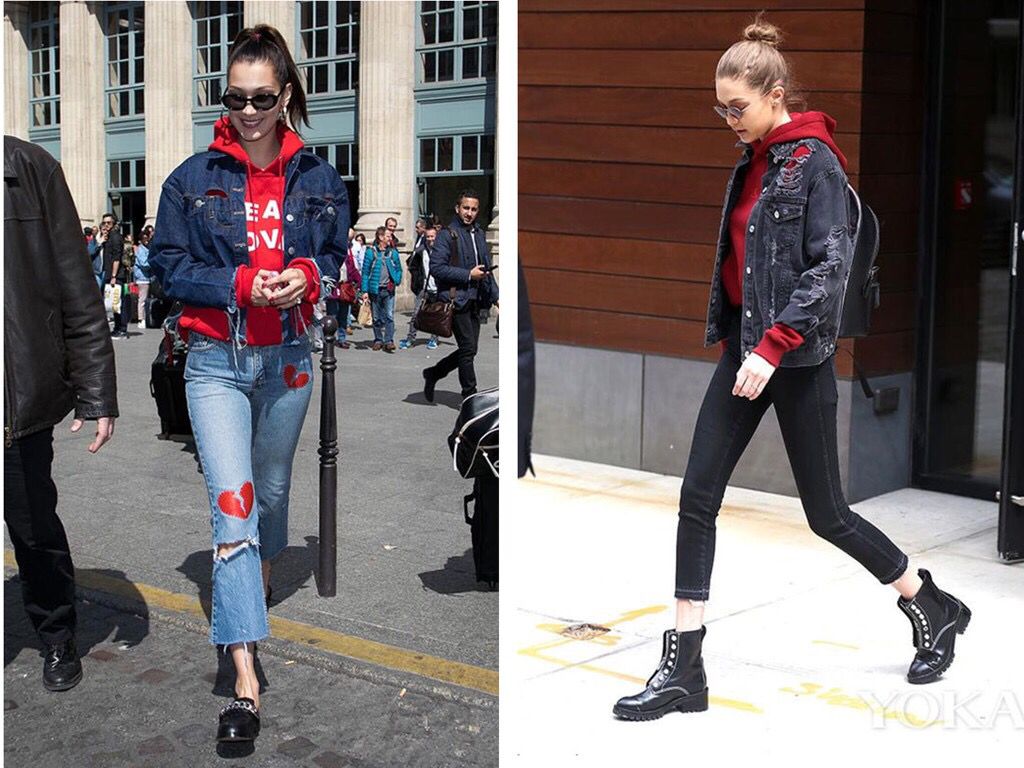 卫衣外搭牛仔外套是不是有种朋克的感觉,并且搭配短装牛仔外套配双短靴十分显腿长,反正我是喜欢这样穿~