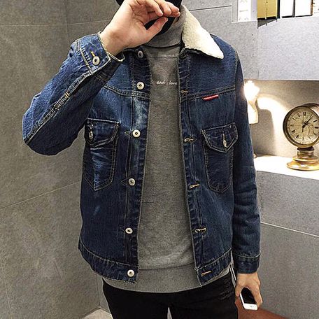 这件牛仔颜色略深,配合牛仔的版型对于暗色肤质的男生来说比较合适,另外白色羊羔领的设计是个亮点,让整体看着不单调。用浅灰色单衣,白色卫衣,或是浅色衬衣来搭配都会有不错的效果。