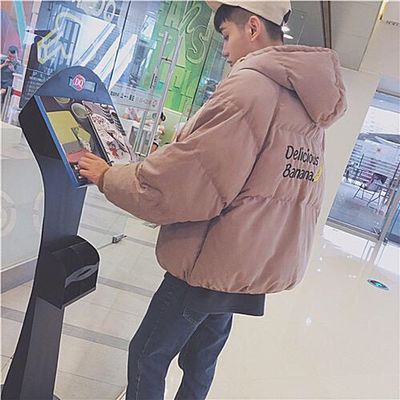 这件浅灰色面包服色系完全符合暗色肤质的男生,而且版型不造作,背部黑色字母的点缀让整体有了点时尚感。内里搭配浅色(千万不要同色)毛衣或针织衫都是不错的选择。