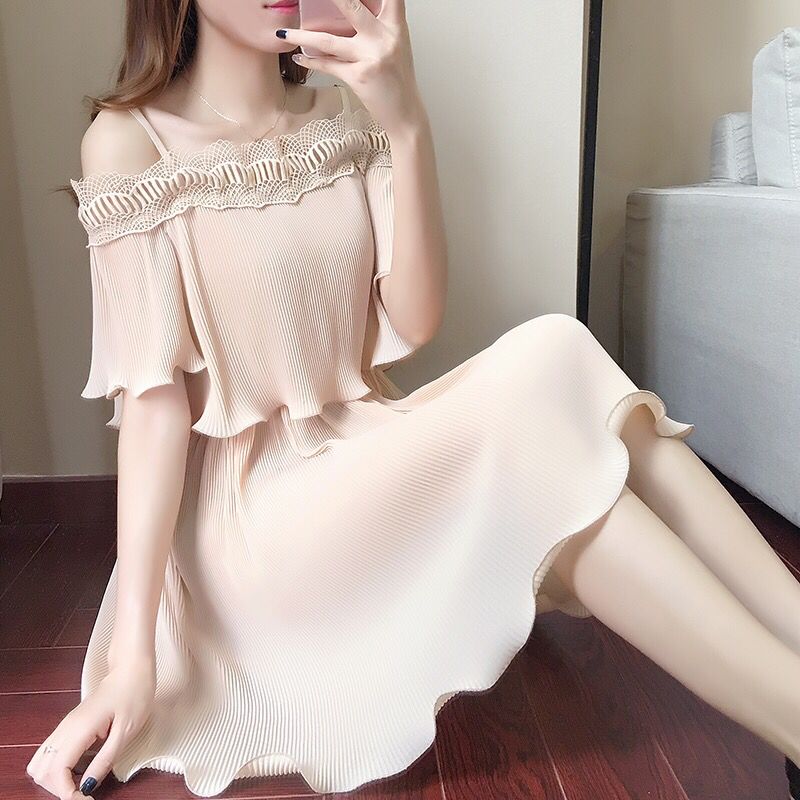 一字领的连衣裙无时无刻都在透露出性感的姿态。这款一字领连衣裙还加了吊带的设计,显得更加性感有魅力。