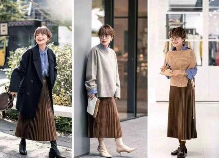 棕色系的百褶裙也非常的百搭,选择一件精致的蓝色条纹衬衫作为内搭,外穿一件黑色的呢子外套,能够给人带来一种成熟女性风,更好的体现出御姐风范。搭配一件浅灰色的针织衫,构成一种重叠的穿搭法,能够使你整个人看起来更加清新和淡雅,这样的穿搭就很适合一些年轻的女性,会使你整个人看起来格外的时尚。当然了,我们也可以选择一件浅棕色的披肩,这样的穿搭会使你整个人看起来格外的知性,比较适合一些职场女性。