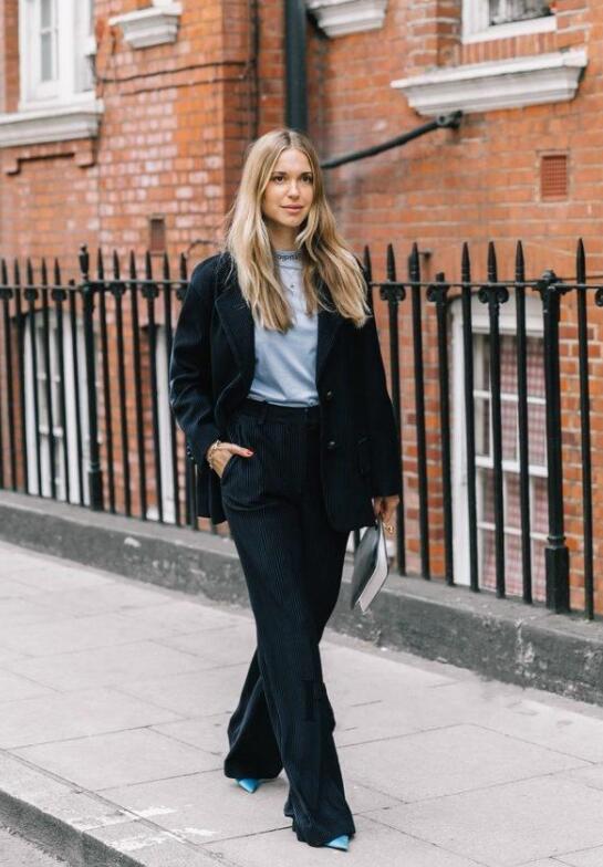 喜欢简约ins风的也可以用卫衣或者针织衫作为内搭,高领半高领的设计要比圆领的更加的适合,简约大方。衬衫算是西装外套的御用内搭,在衬衫的选择上可以不用非要专业感浓厚的白衬衫,取而代之的可以选择一些蓝色或者有特别设计的款式。当然比较怕冷的女生,可以选择可以叠穿针织打底衫来搭配西装外套,不仅保暖还很有档次。