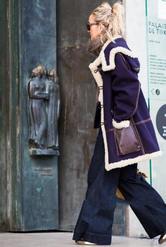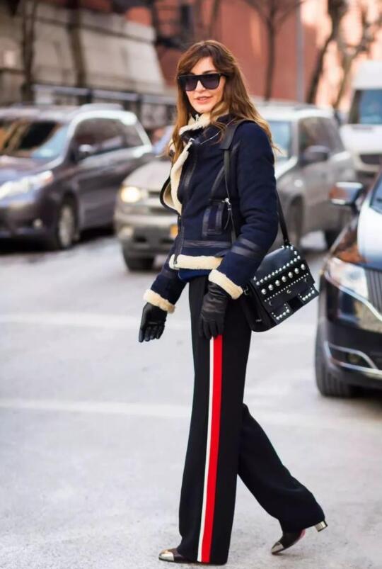 羊羔毛外套应该是秋冬季时尚百搭又保暖的一个单品了吧。皮毛一体外皮质内毛毛的设计,注定了它一定很抗冷保暖性很好。用它来搭配阔腿裤,气场十足大方还有女人味。阔腿裤的另一大特点就是裤管足够的长,可以在视觉上起到拉长腿部线条的作用,在搭配一款短款的羊羔毛外套,上短下长,腿长秒变一米八。