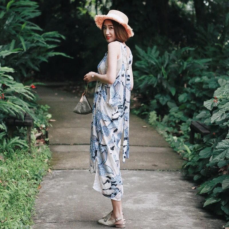 这款吊带长裙真的是度假遮肉福音,不止显瘦清爽,还能穿出满满的气质。图案不再是大众的碎花,是相对来说比较抽象的几何图案。