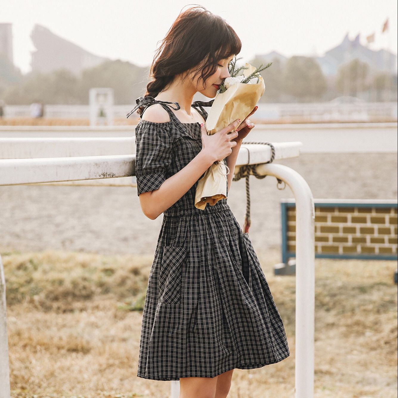 这款复古格纹元素的连衣裙是不会过时的一大元素,肩带可以随意打结露肩露出纤美锁骨和性感香肩,也可以当做一字领穿着。