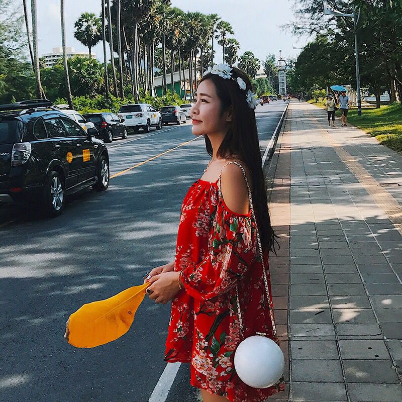 当清新的小碎花开满整件衣裳的时候,总有种莫名的幸福感。绑带的蝴蝶结优美又动人,领口间细腻的木耳边,让一字的领型也变得格外柔软。