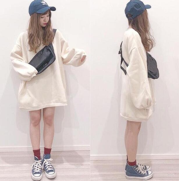 ▲时尚宽松卫衣与板鞋的结合,宽松的卫衣遮住自身的下装与臀部线条,如果是梨型身材的女生在核实不过了,宽大简单的卫衣遮住大部分身形,在加上一双简单的板鞋,无形之中透露出一种小女生的单纯,是不是有一种邻家小妹妹的感觉呢?
