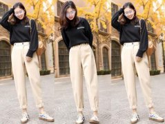 今年流行的小腿休闲裤[指设计相对宽松的裤腿位置,而小腿是小脚和窄腿的效果,所以这样的裤子,无论你是大腿粗还是小腿粗,都很容易控制],修饰腿部线条,超级显腿瘦,谁穿 休...
